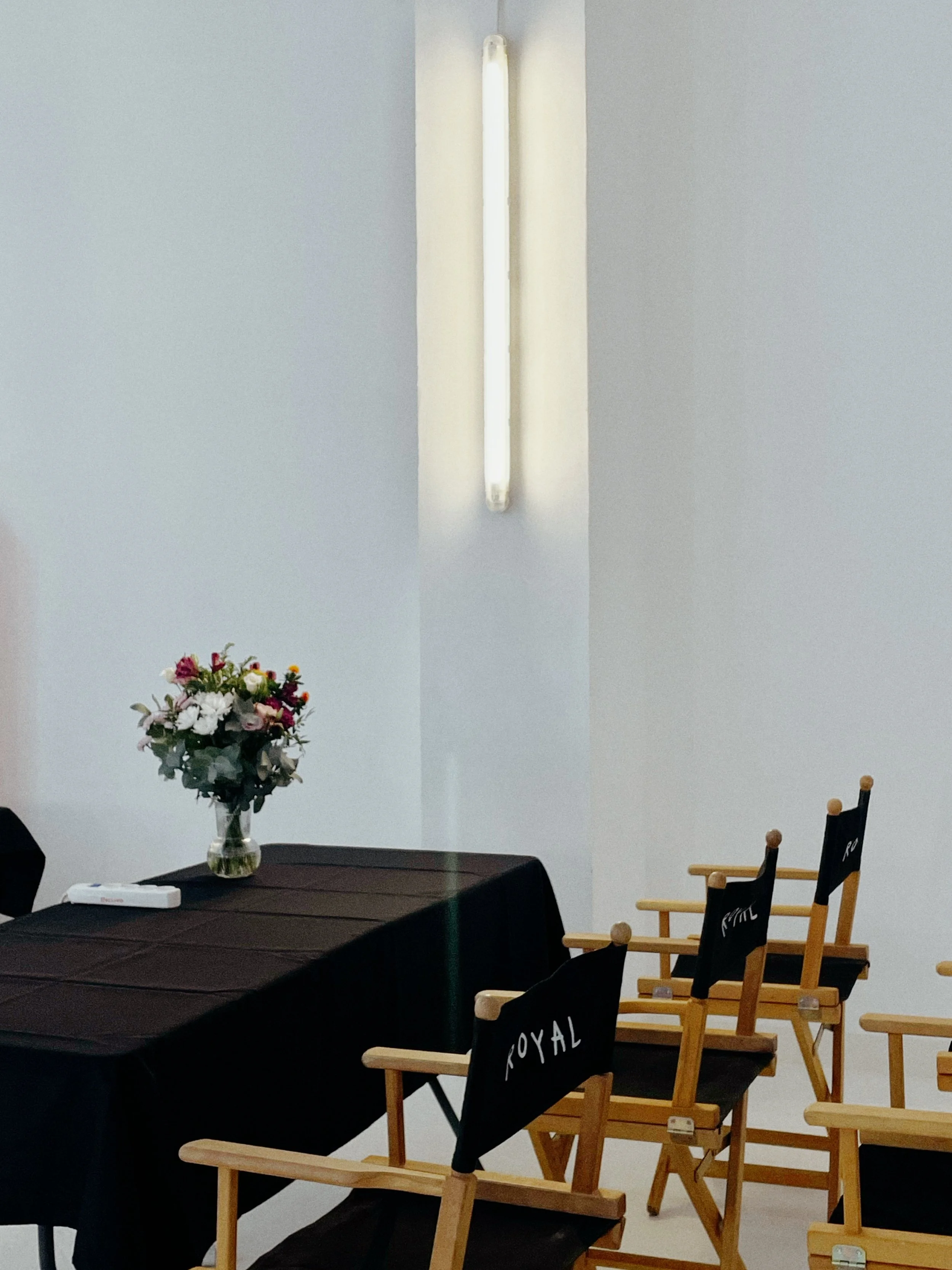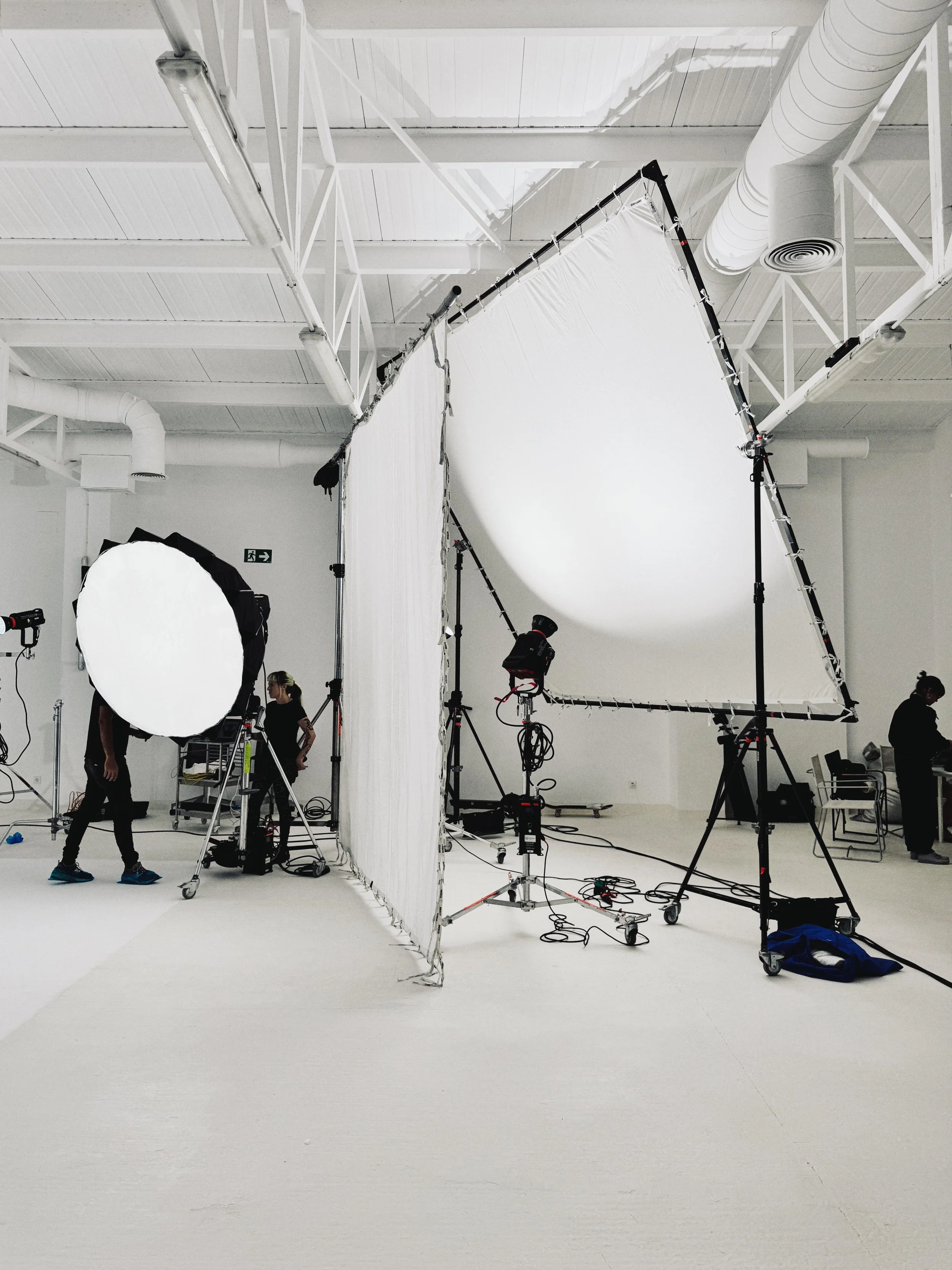 ciclorama 6,50x5,00x3,80 m · altura máxima 5,40m · office equipado · luz cenital natural · blackout motorizado · 43KW en trifásica · climatización · fibra óptica profesional · patio privado